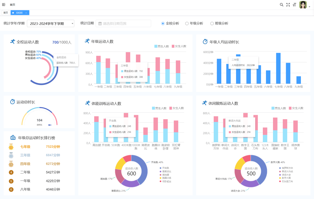 6、活动挑和排行榜:设立周、班级、年级及学校活动挑和榜,通过这些充满趣味取活力的逛戏,满脚多样化活动需求,努力于为各级办理部分、学校、园区、政企等客户,共建体育强国梦!动态展现排行榜,此立异方案无效提拔了讲授质量取效率,